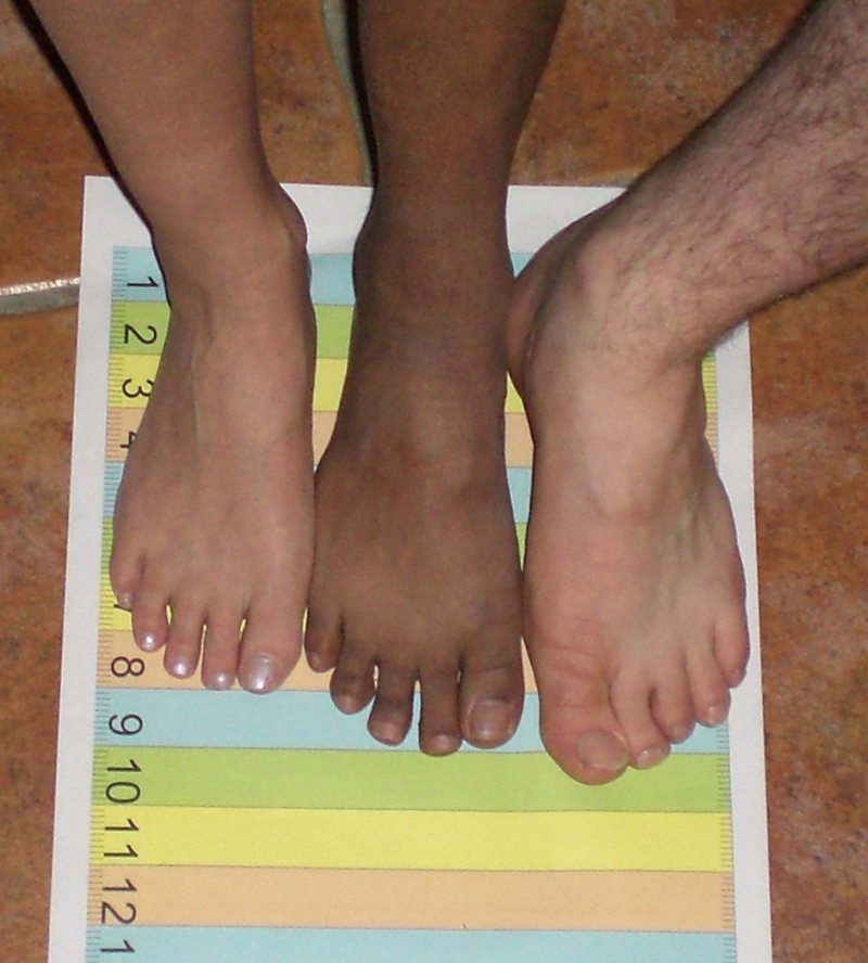 In fact very few people have feet that are as large as the imperial foot; you would need a British “shoe size 12 ½” foot! The vast majority of people have smaller feet (the photo above shows 3 people measuring their feet against a scale in inches). The average human foot is 24 cm versus 30.48 cm for the imperial foot. If an imperial foot is “natural” then by implication most people have unnaturally small feet! If in doubt try measuring your own feet and those of your friends and family.