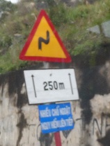 The following shows many of the signs I came across, as well as some comments. Note that many road signs were taken through the side windows of moving buses on sometimes bumpy roads, so if some pictures are a bit blurred or taken at strange angles, please bear with me! Also to be noted is the somewhat casual mixing of upper and lower cases, both private signs and those erected by the authorities. Obviously a little work needs to be done here in getting metric usage right. Road signs in Vietnam were exclusively international in style, including the use of a yellow background on triangular warning signs. Click on the images if you wish to enlarge them.