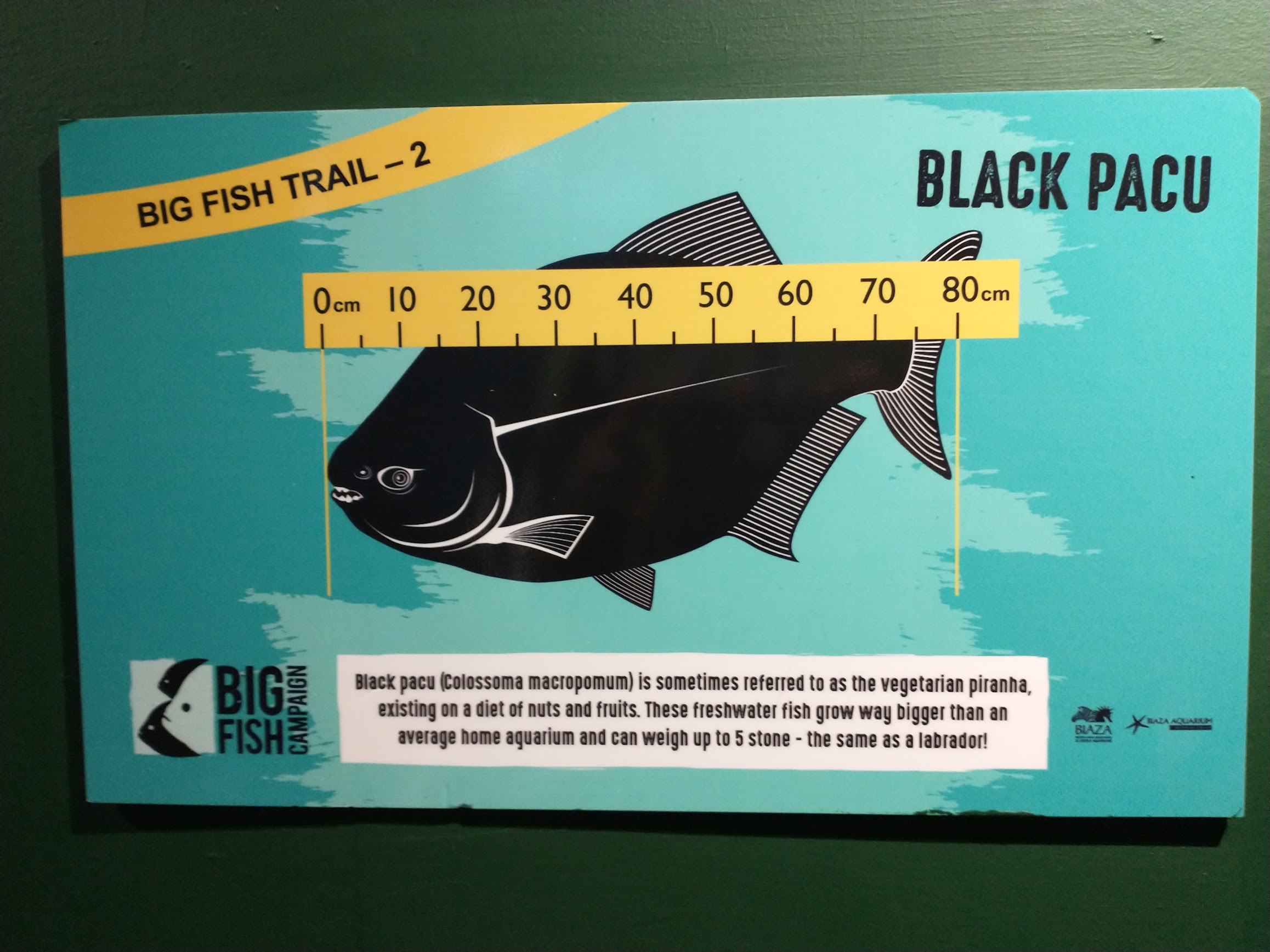 In the right poster above, metres and kilograms are used to describe the length and weight of the Black Pacu respectively.